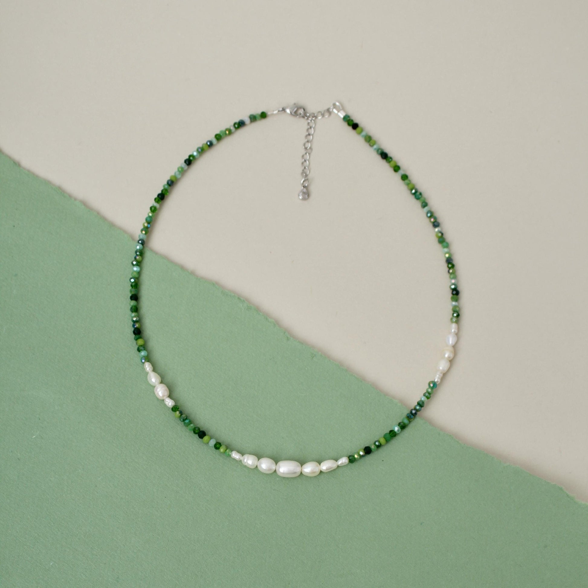 Fiona - Green Beads Pearl Necklace