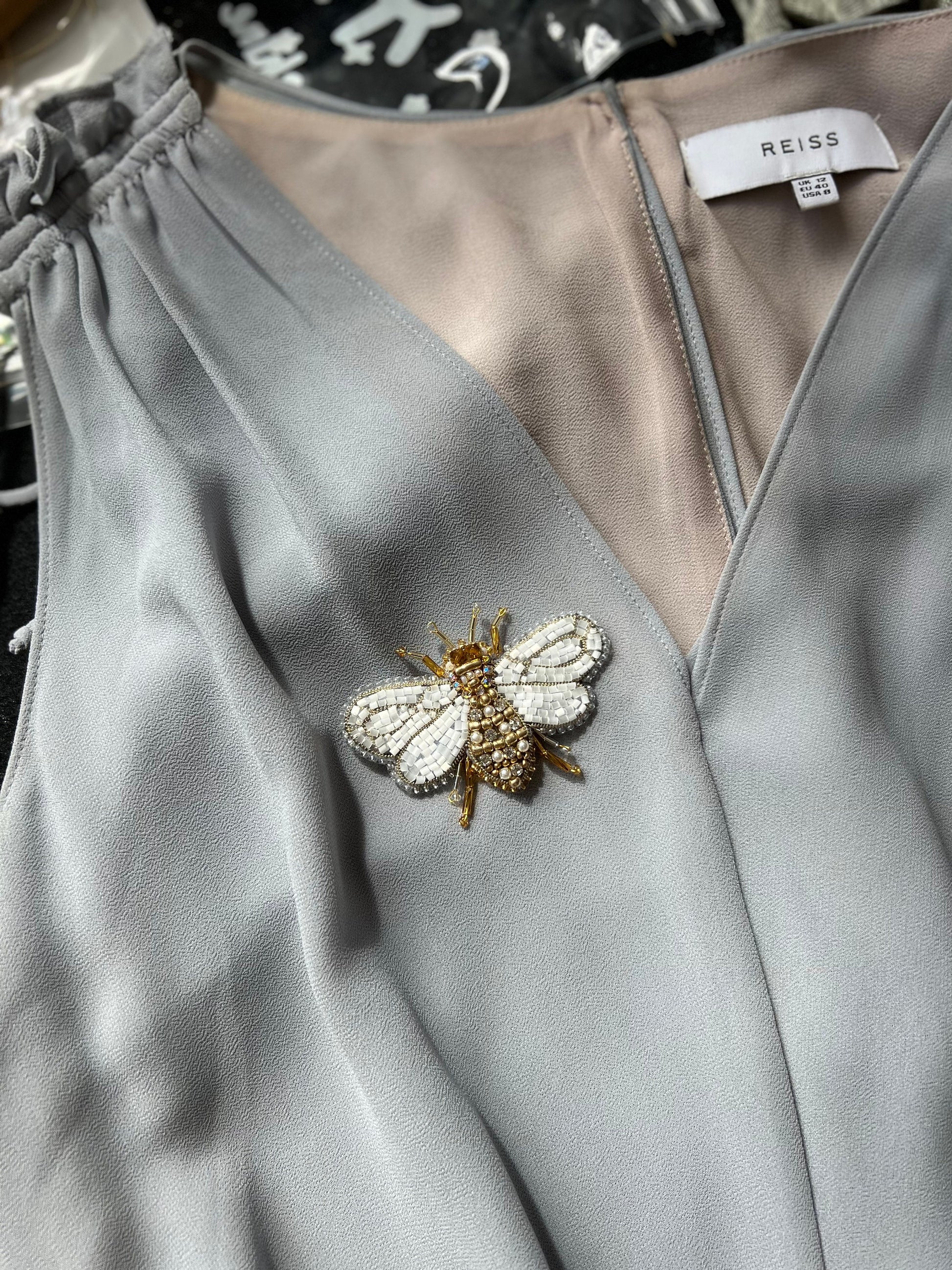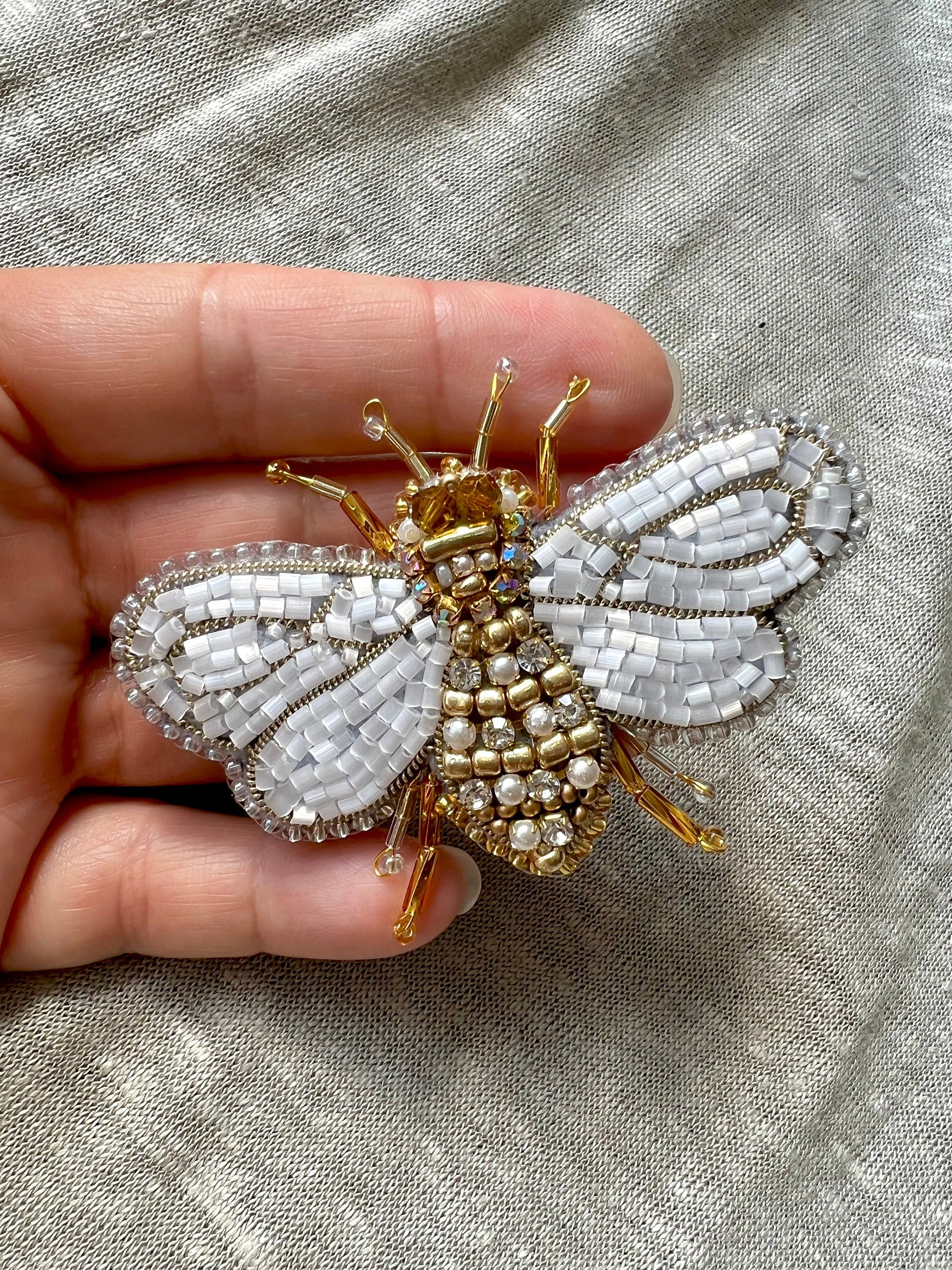 Delicate and stunning, this handmade embroidered bee brooch is a true statement accessory. Each piece takes 4–5 hours to craft, resulting in a design that is both intricate and one of a kind. A thoughtful gift for a loved one, a bridesmaid team, or a special treat for yourself, this brooch highlights individuality and adds a touch of personality to any outfit.