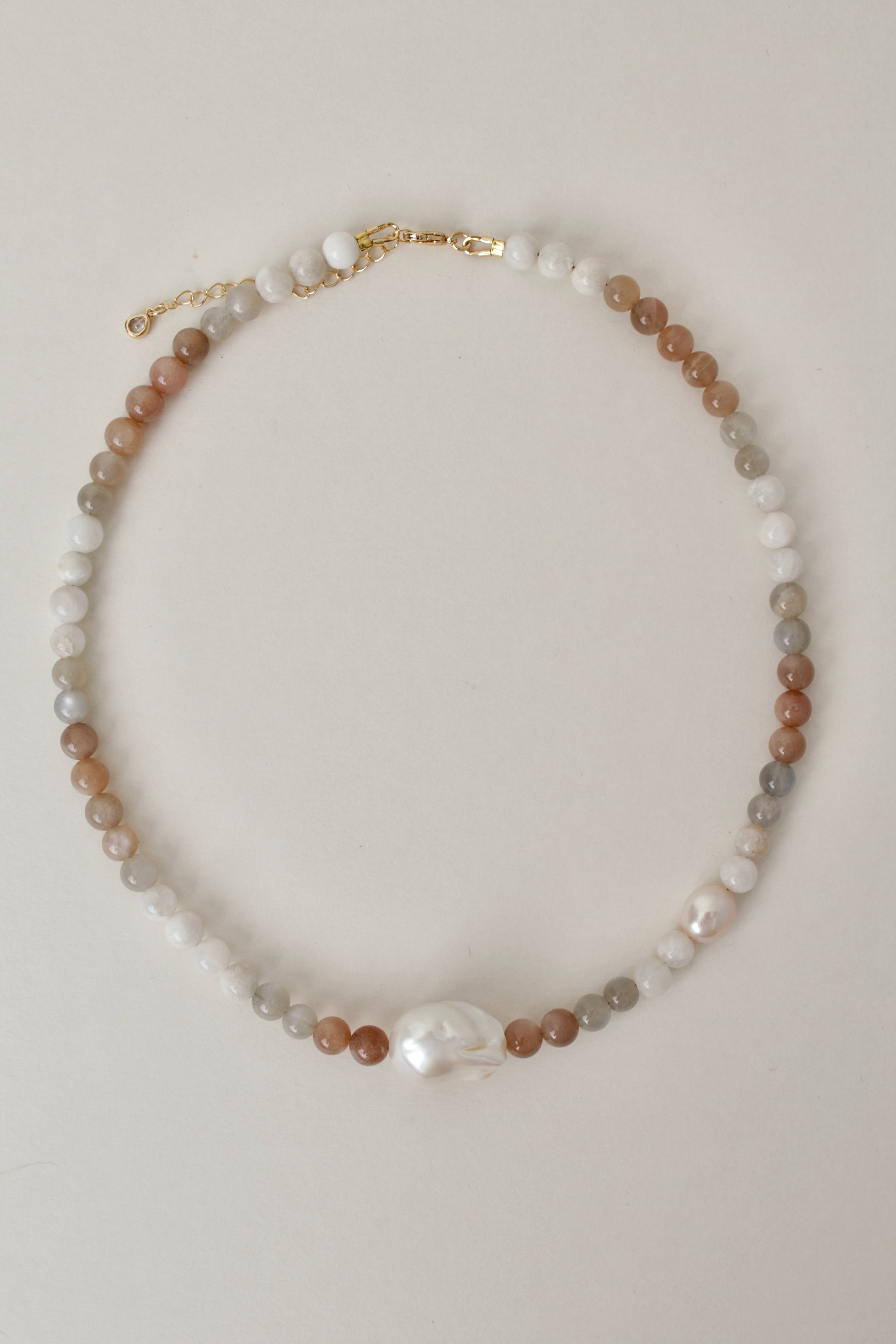 - Gemstones: Natural agate beads + large baroque freshwater pearl centerpiece