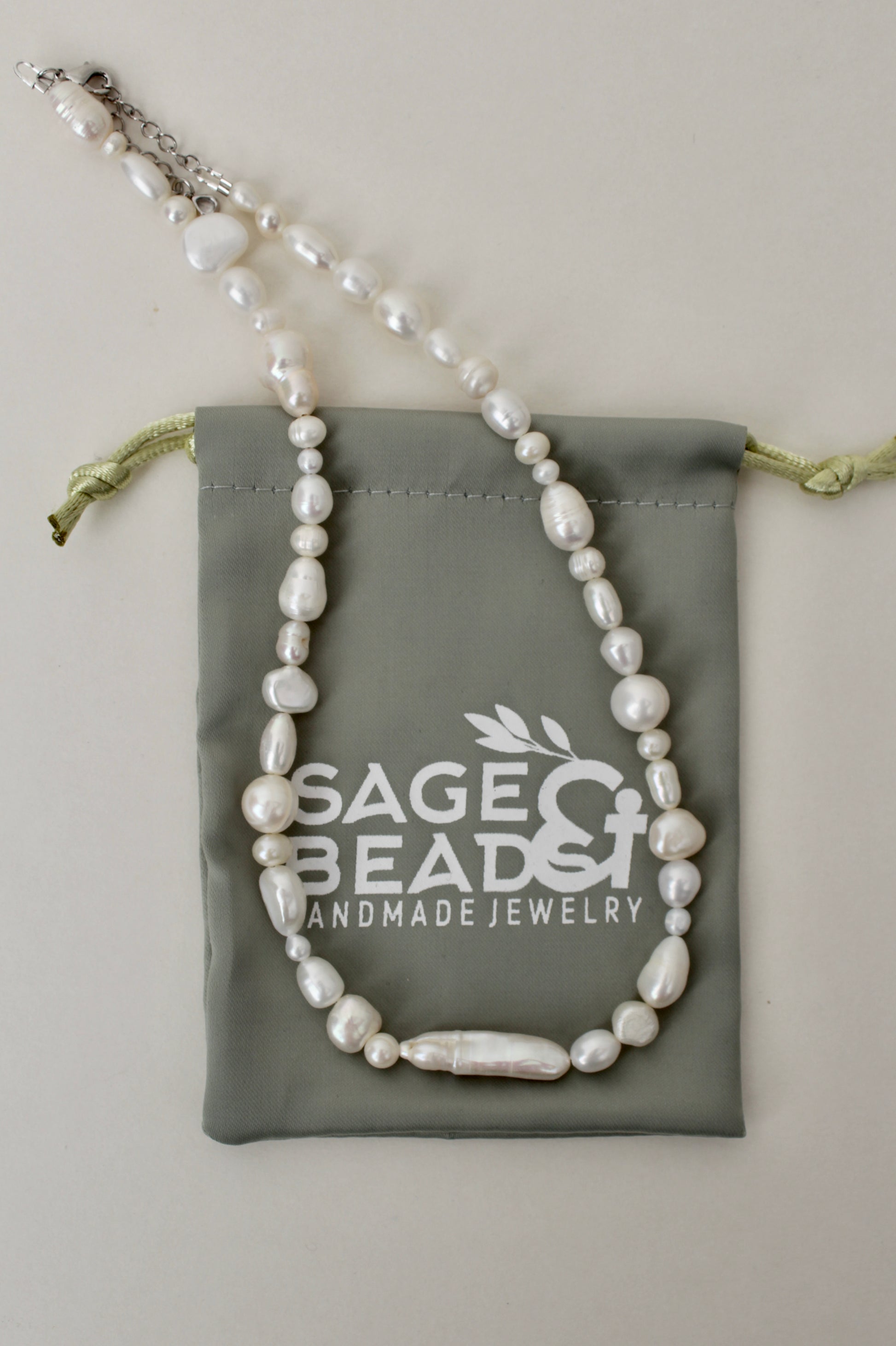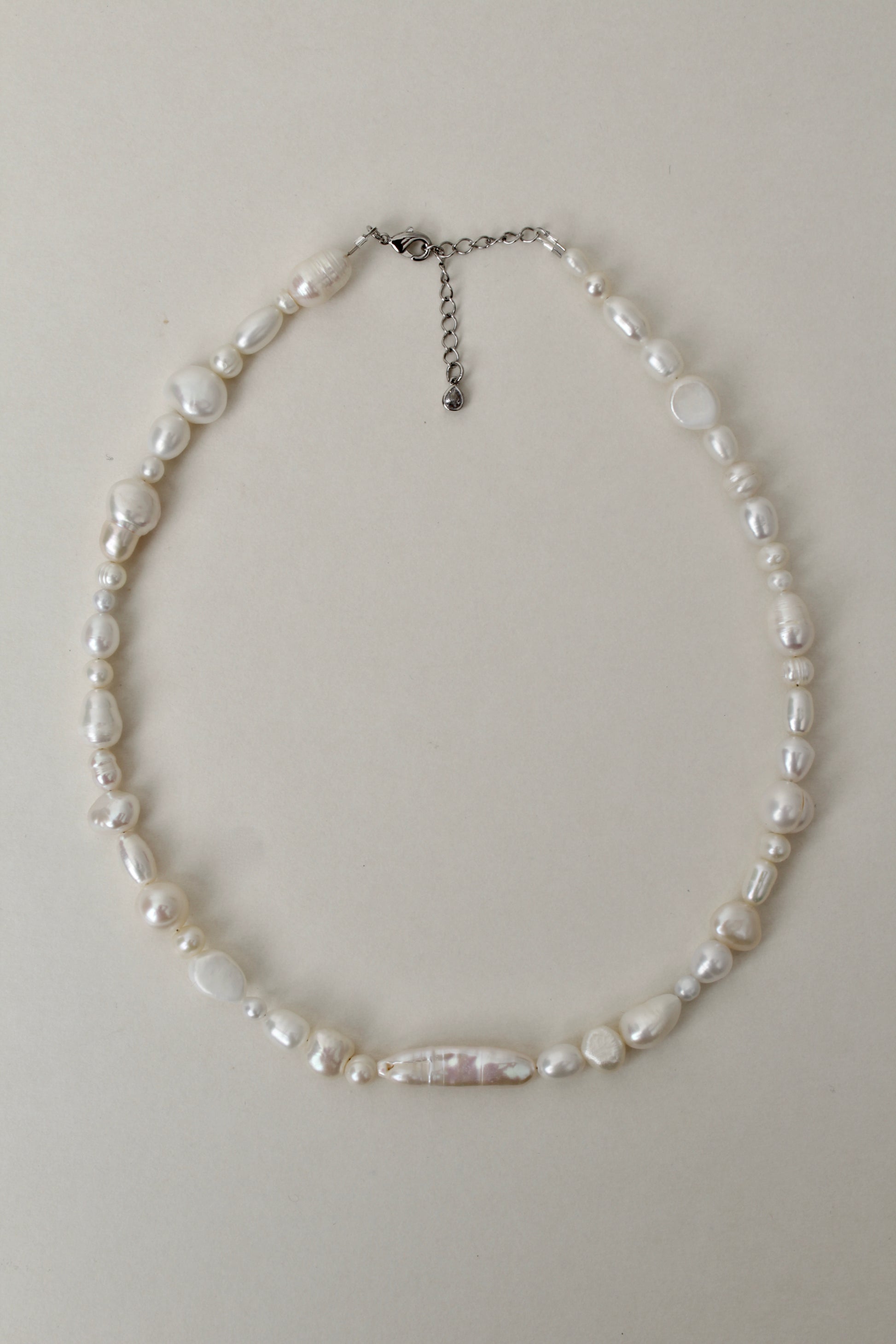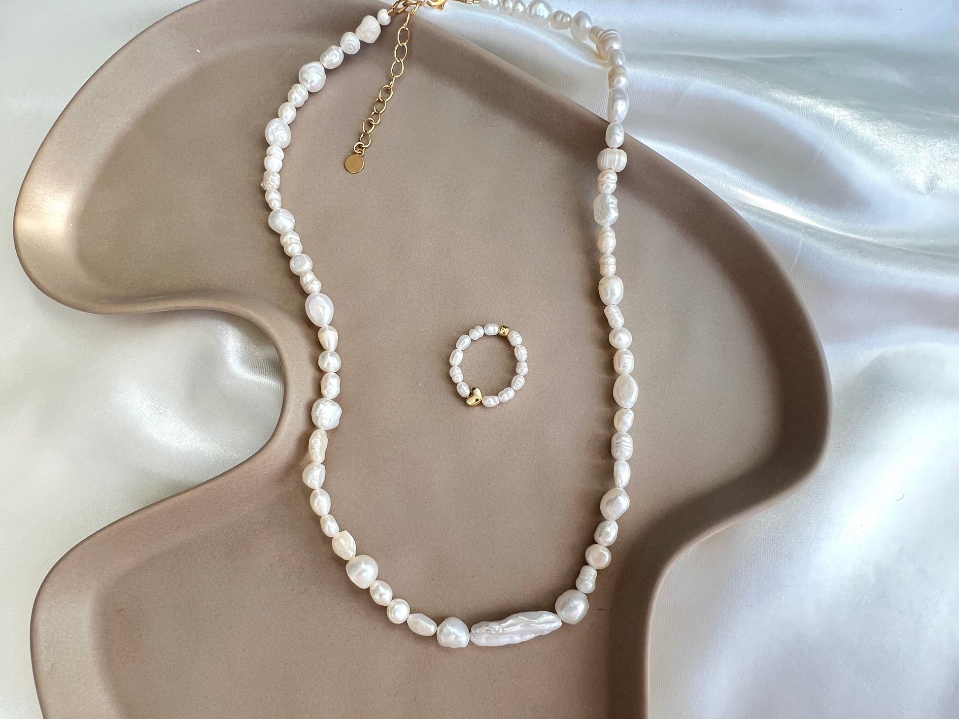 This beautiful irregular pearl necklace is a timeless piece for all seasons and an essential addition to any jewellery box. Handcrafted with genuine freshwater pearls in unique shapes, it features a striking baroque pearl with extra shine that naturally draws attention. Elegant yet versatile, it pairs effortlessly with everything from a casual t-shirt to evening wear, and it’s a style that suits both men and women.