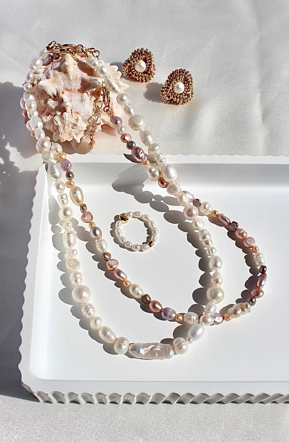 Made with genuine freshwater pearls in varying shapes, approx. 4–10 mm each.