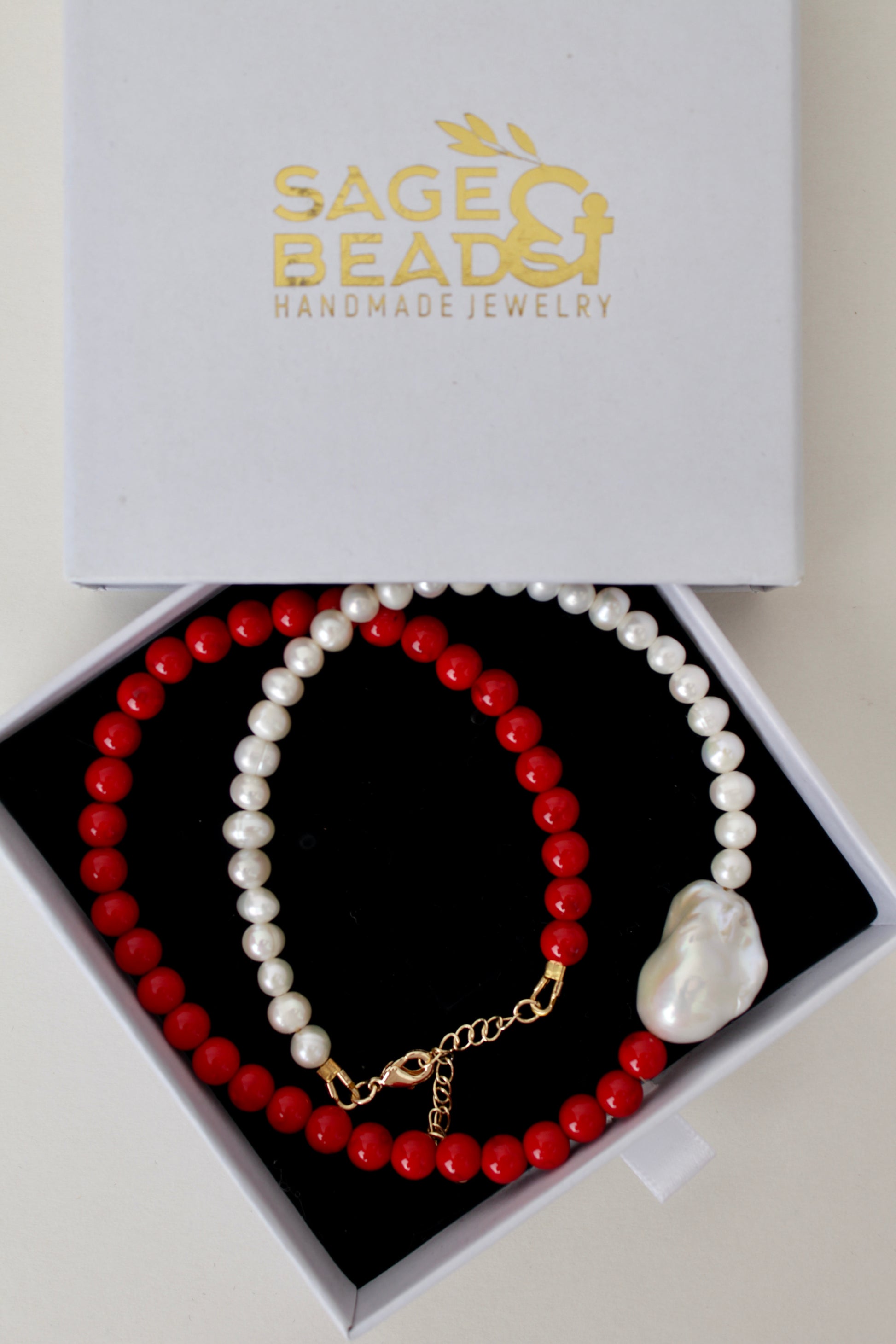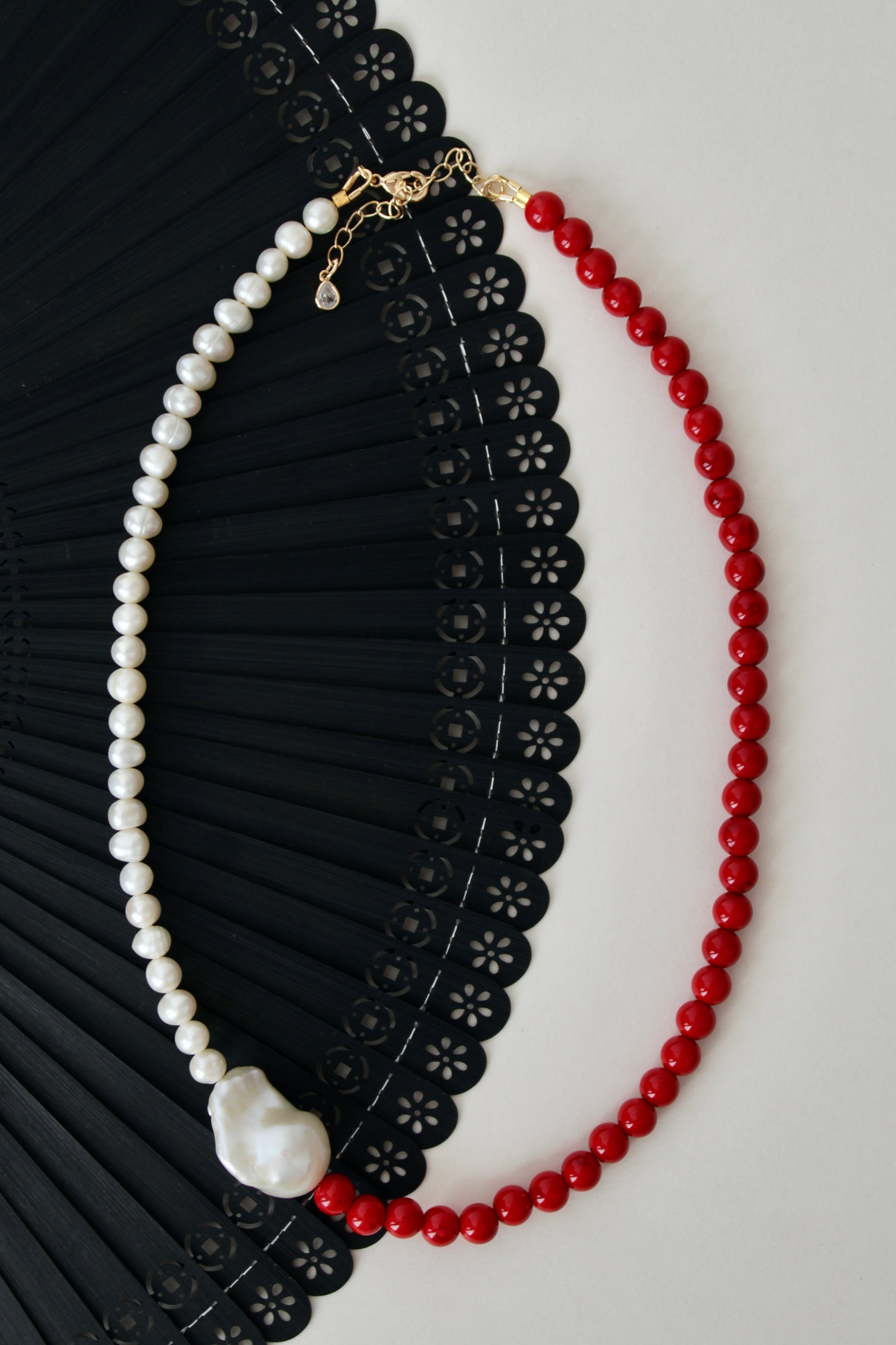 Meticulously crafted, this piece embodies both passion and purity: the fiery red of coral evokes strength and vitality, while the iridescent pearls radiate grace and elegance. Perfect for both modern minimalists and lovers of distinctive statement jewelry, it’s more than an accessory—it’s a conversation piece.
