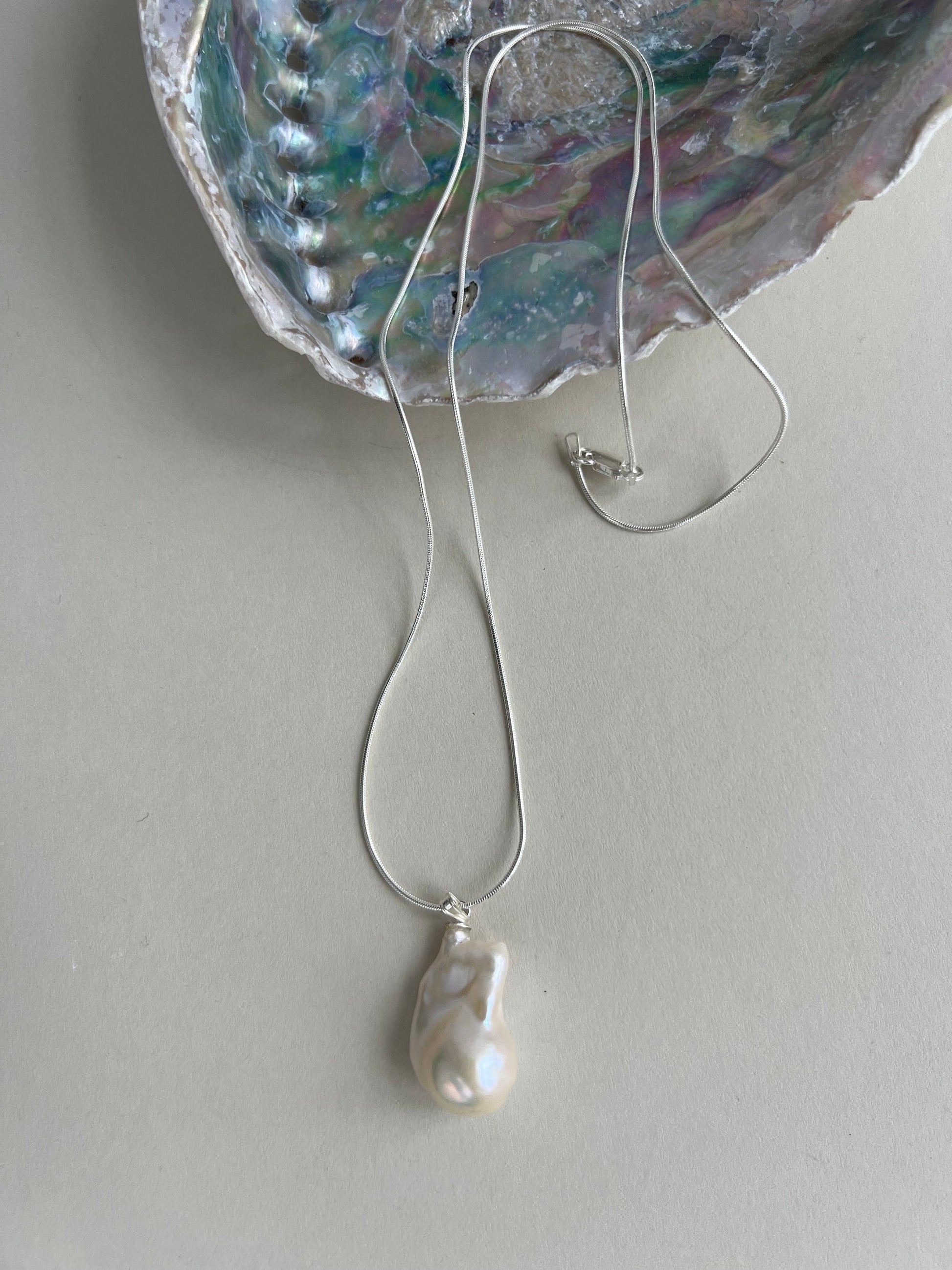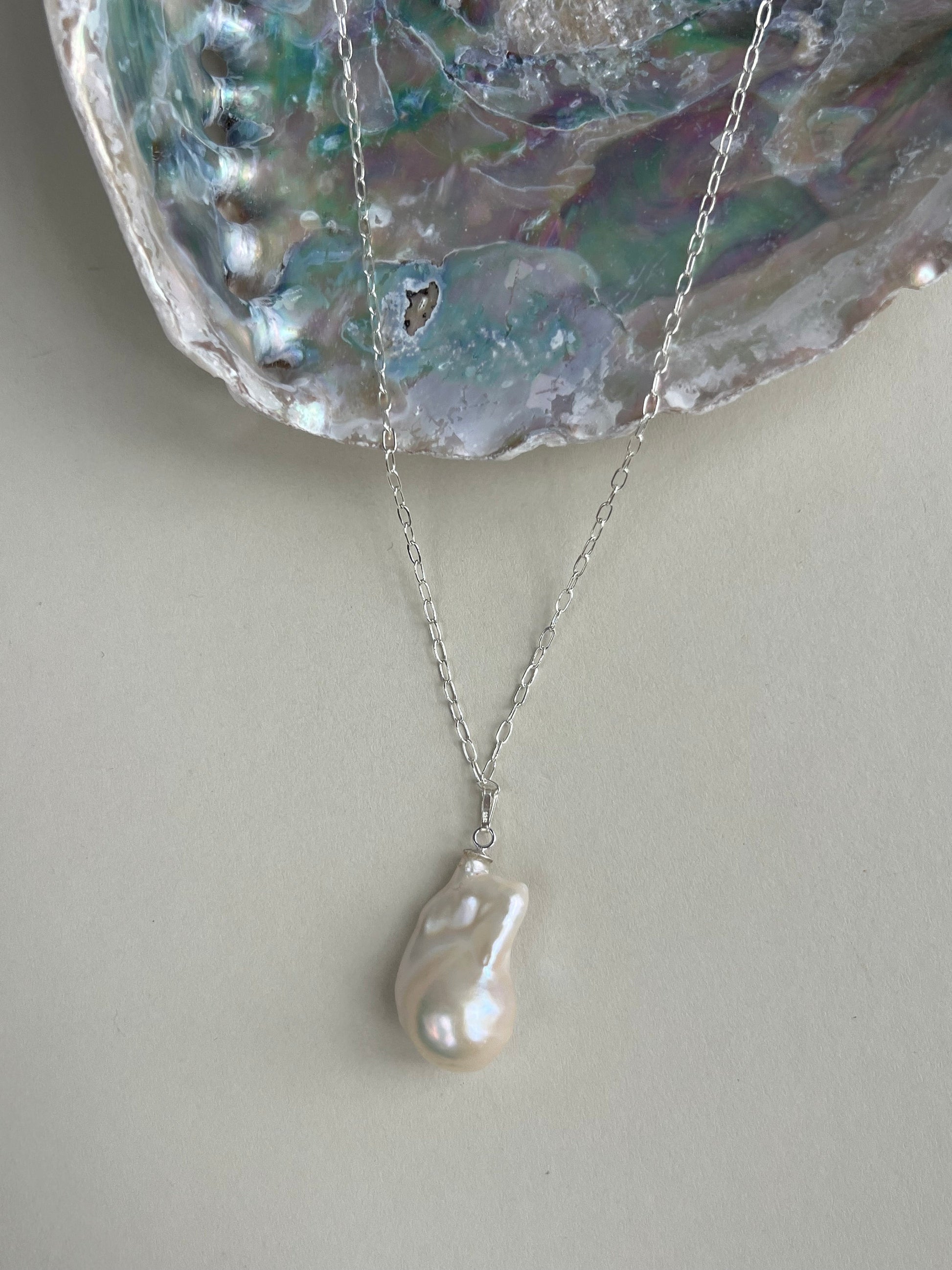 A timeless pendant that highlights the organic beauty of baroque pearls