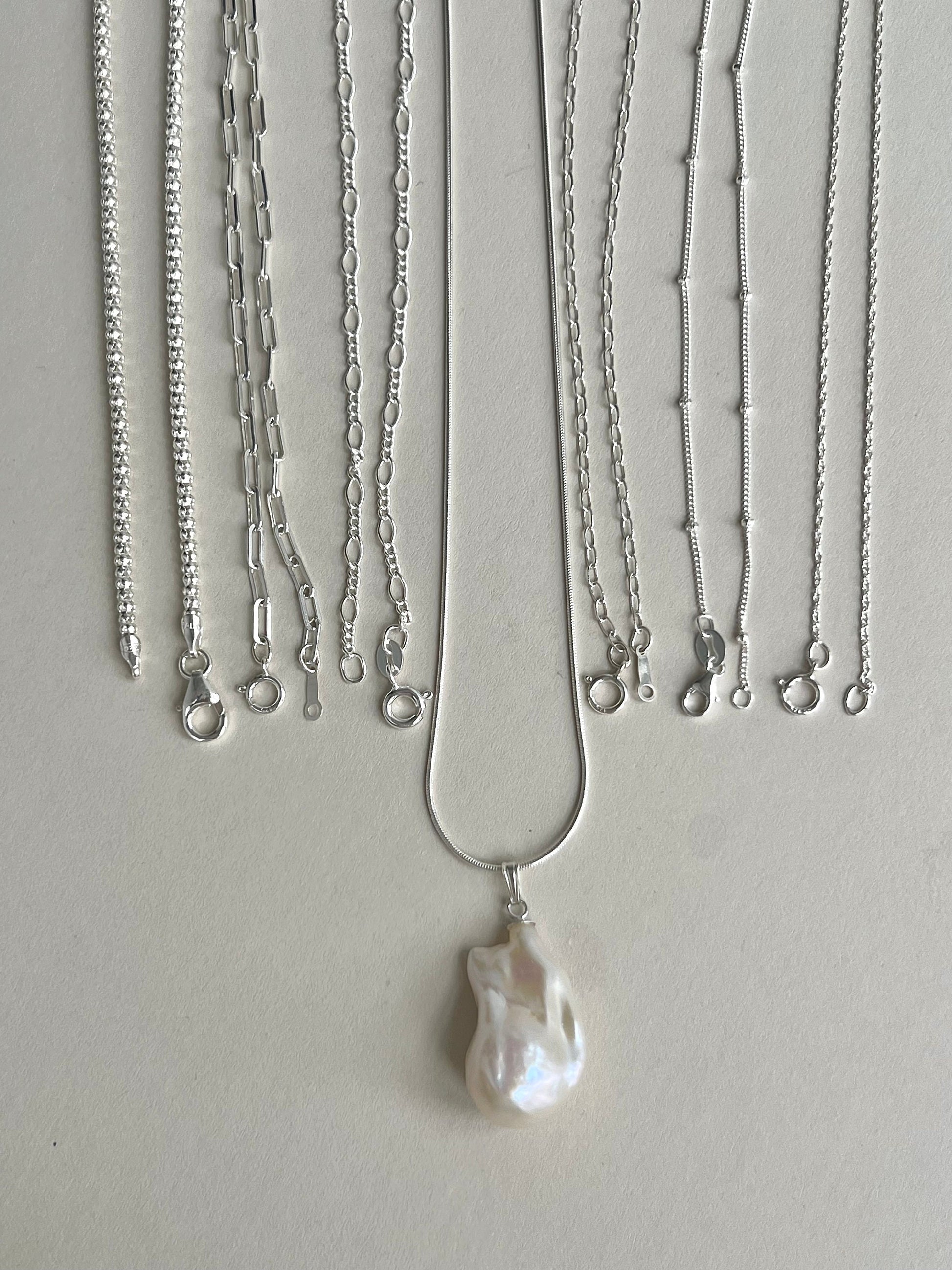 Long Sterling Silver Chain with Baroque Pearl Pendant – Timeless Elegance