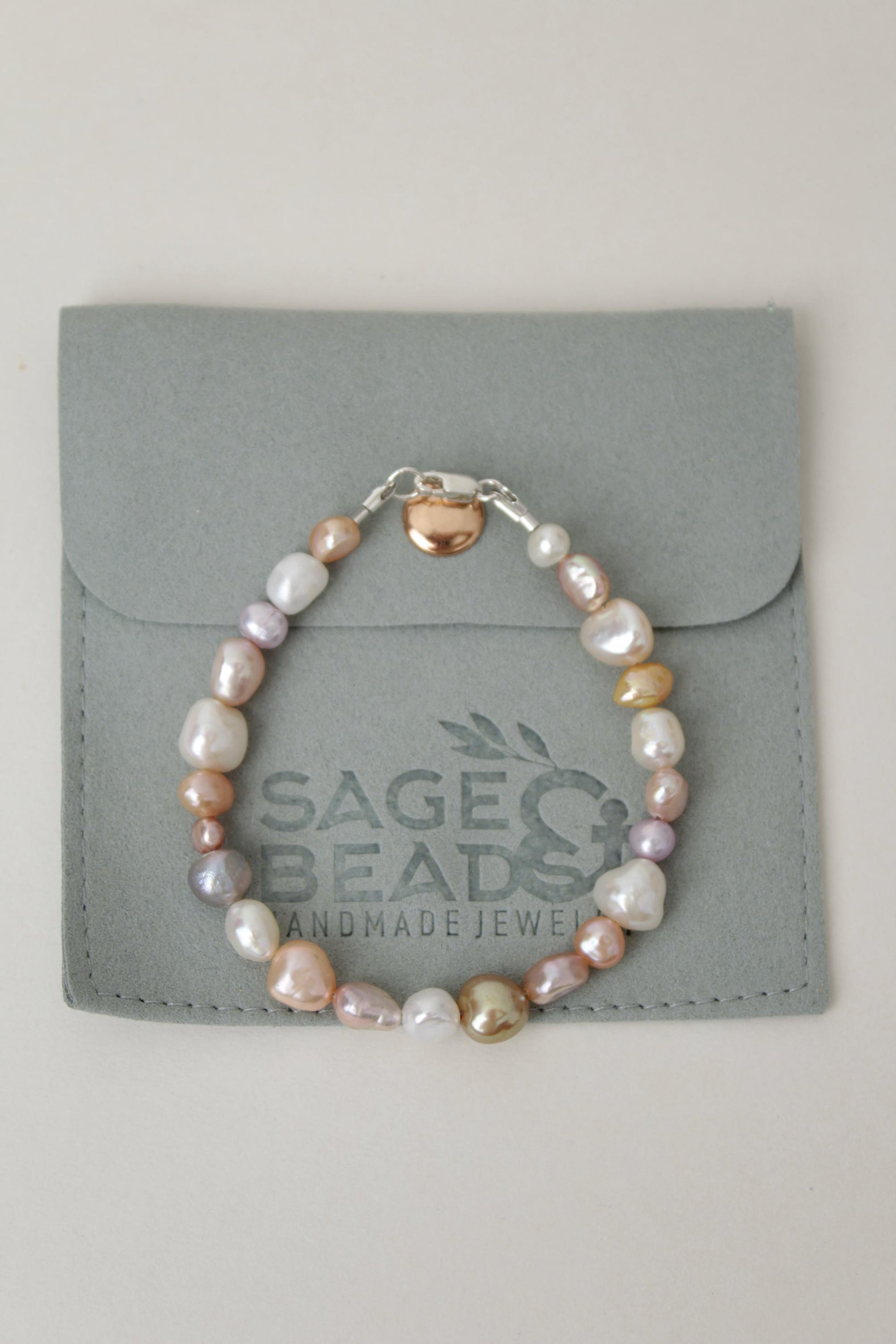 This delicate bracelet is handcrafted with genuine multicoloured pastel pearls, creating a soft and elegant accessory that adds charm to any outfit. Each pearl is naturally unique, with subtle variations in shape, shade, and size that highlight the beauty of nature. Finished with your choice of stainless steel, sterling silver, or 14K gold-filled clasp and wire, it’s a timeless piece made to last.